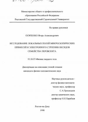 Исследование локальных полей микроскопических примесей и электронного строения оксидов семейства перовскита