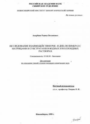 Исследование взаимодействия РНК- и ДНК-полимераз с матрицами и субстратами в водных и коллоидных растворах
