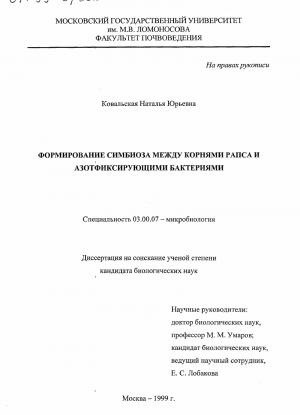 Формирование симбиоза между корнями рапса и азотфиксирующими бактериями