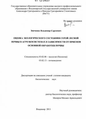 Оценка экологического состояния серой лесной почвы в агроэкосистемах в зависимости от приемов основной обработки почвы