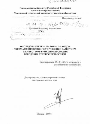 Исследование и разработка методов автоматизированного управления развитием и качеством функционирования городских сетей электросвязей