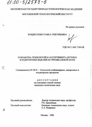 Разработка технологий и ассортимента мучных кондитерских изделий из тритикалевой муки