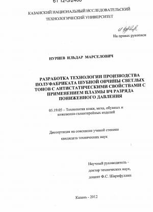 - Повышение эффективности использования низкосортного сырья в кожевенно-меховом производстве с применением высокочастотной плазмы