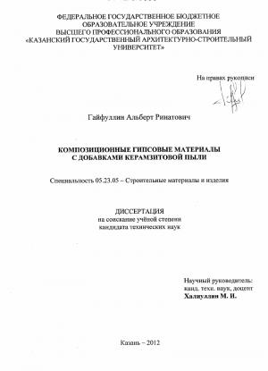 Композиционные гипсовые материалы с добавками керамзитовой пыли