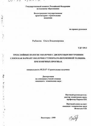 Трехслойные пологие оболочки с дискретным внутренним слоем как вариант оболочки ступенчато-переменной толщины при конечных прогибах