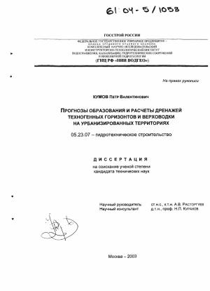 горизонтов И ВЕРХОВОДКИ на урбанизированных территориях.