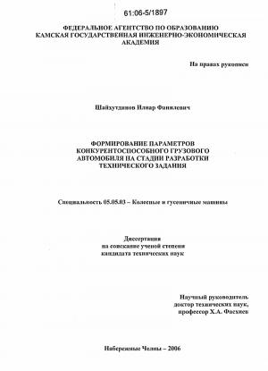 2 ФОРМИРОВАНИЕ ТЕХНИЧЕСКОГО ЗАДАНИЯ КОНКУРЕНТОСПОСОБНОГО ГРУЗОВОГО АВТОМОБИЛЯ