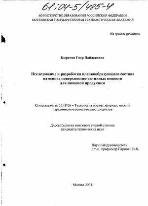 Исследование процесса и разработка технологии получения пленкообразующего состава