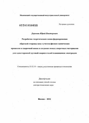 Глава 5. РАЗРАБОТКА ВСЕПОЗИЦИОННОЙ ТЕХНОЛОГИИ ОДНОСТОРОННЕЙ ДУГОВОЙ СВАРКИ СТАЛЕЙ С ИСПОЛЬЗОВАНИЕМ