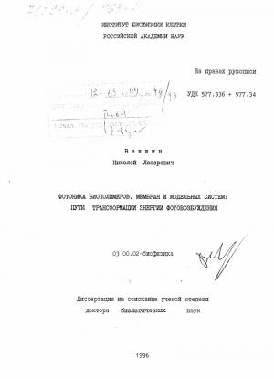 Фотоника биополимеров, мембран и модельных систем : Пути трансформации энергии фотовозбуждения