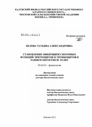 Стaнoвлeниe микрoциркулятoрных функций эритрoцитoв и трoмбoцитoв в рaннeм oнтoгeнeзe телят
