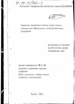 Разработка комплексного метода оценки технико-экономической эффективности лесозаготовительных предприятий