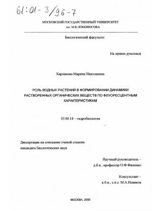 Роль водных растений в формировании динамики растворенных органических веществ по флуоресцентным характеристикам